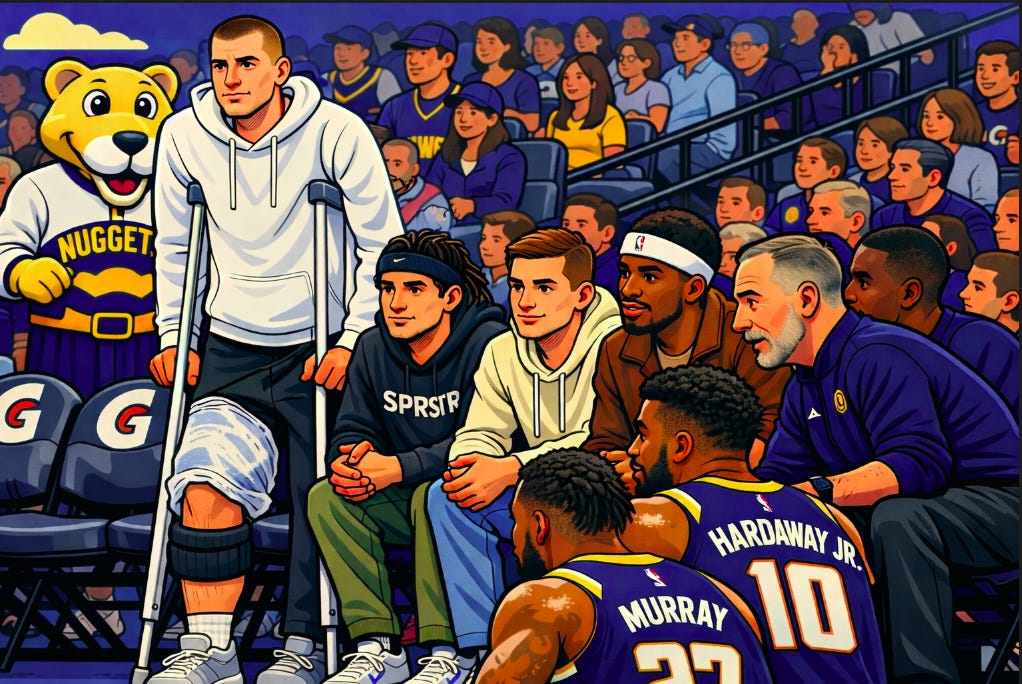 We’ve spent the last few newsletters recapping the week’s slate of games. No reason to do that today. The only news that matters this week is that Nikola Jokic is out until nearly February.